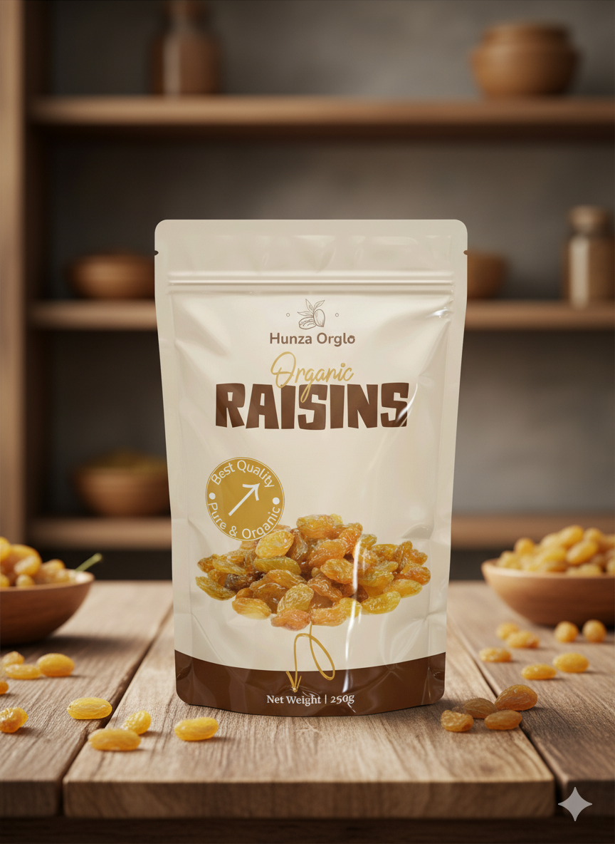 Sweet, juicy, and naturally sun-dried, Hunza Orglo Raisins are packed with natural energy and essential nutrients. Grown in the clean mountain air of Hunza, each raisin retains its golden color and authentic sweetness. Perfect for snacking, baking, or adding to cereals, they’re a healthy source of iron, fiber, and antioxidants. Free from preservatives and chemicals, these raisins bring you the pure, natural taste of Hunza’s organic goodness.