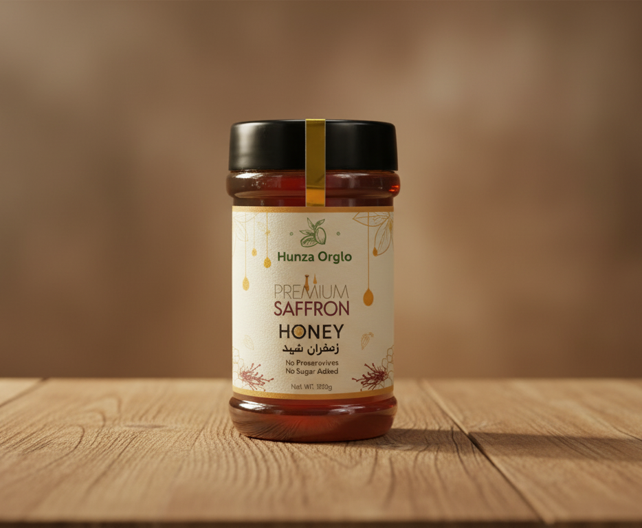 Experience the royal blend of pure Hunza honey infused with premium Irani saffron. This golden fusion offers a rich aroma, luxurious taste, and powerful natural benefits for energy, skin glow, and overall wellness. Each spoonful delivers the essence of nature’s finest ingredients, sweet, aromatic, and deeply nourishing. Perfect for tea, desserts, or a revitalizing daily spoonful.